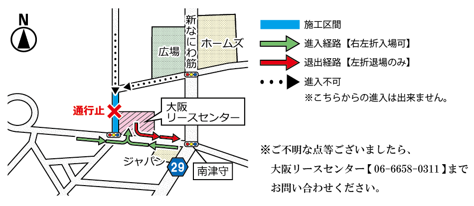 大阪リースセンター前道路工事に伴う、搬入・搬出ルート変更のお知らせ